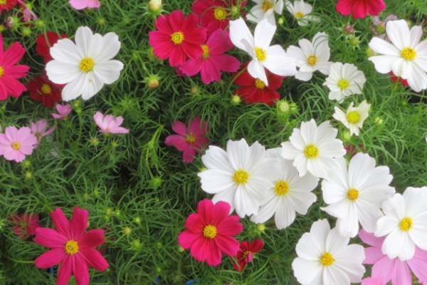 コスモスやナデシコ、ケイトウなどがガーデニングの寄せ植えに向いています。秋といえばやはりコスモスでしょう。ガーデニングでもよく利用する花ですが、河原や公園などで自然に咲いているのをよく見かけます。台風などの強い風にも耐えられるくらいの強くて丈夫な花なので、寄せ植えには持って来いの花です。背が高くて細いので、コスモスだけか、背の低いアリッサムなどと植えても見栄えがいいでしょう。